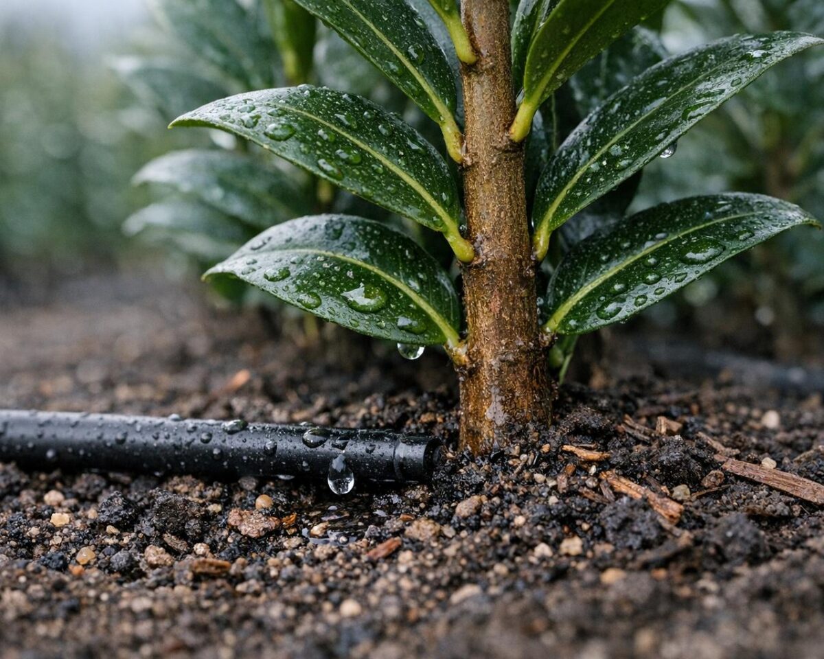De første ukene etter planting er avgjørende for at røttene til laurbærhegg skal etablere seg. Dryppvanning gir jevn vanntilførsel uten å oversvømme jorden, noe som kan skade røttene. Samtidig reduserer det risikoen for stress som følge av ujevn vanning. Sorter som ‘Etna’, ‘Otto Luyken’ og ‘Mano’ har alle godt av jord som holdes jevnt fuktig, og dryppvanning hjelper med å oppnå denne balansen.