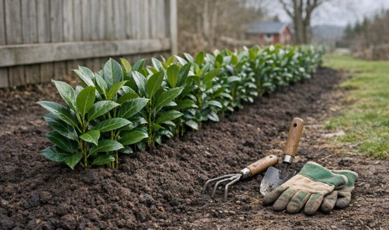 En steg-for-steg guide til planting og tidlig pleie av laurbærhekk i Norge — plassering, jordforberedelse, planting, vanning og beskjæring.