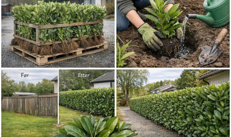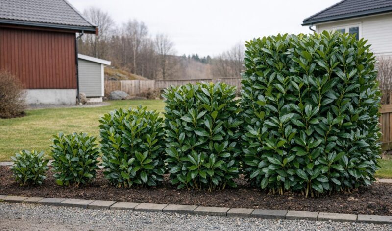 Praktisk guide til laurbærhekk i Norge — velg riktig størrelse, plantetetthet og stell for best etablering, vekst og privatliv.