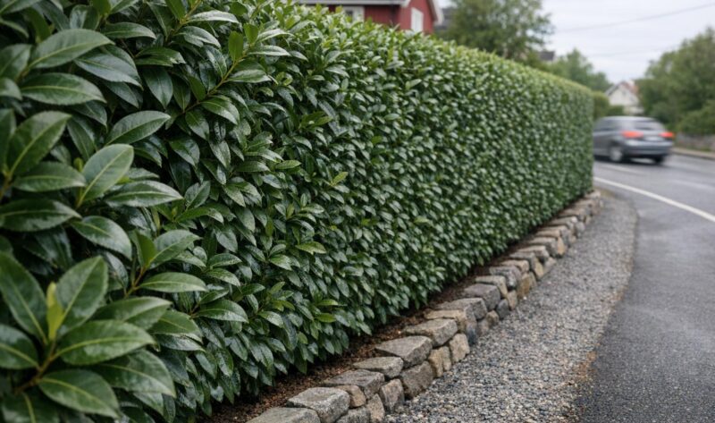 Praktisk guide til å plante og vedlikeholde støydempende hekker i Norge — valg av laurbærhegg, riktig avstand, beskjæring og vinterstell.