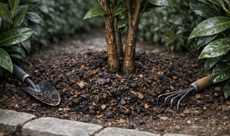 Moden kompost er nøkkelen til en tett, sunn laurbærhekk — riktig jordforberedelse, blanding og årlig påføring avgjør vekst og drenering.