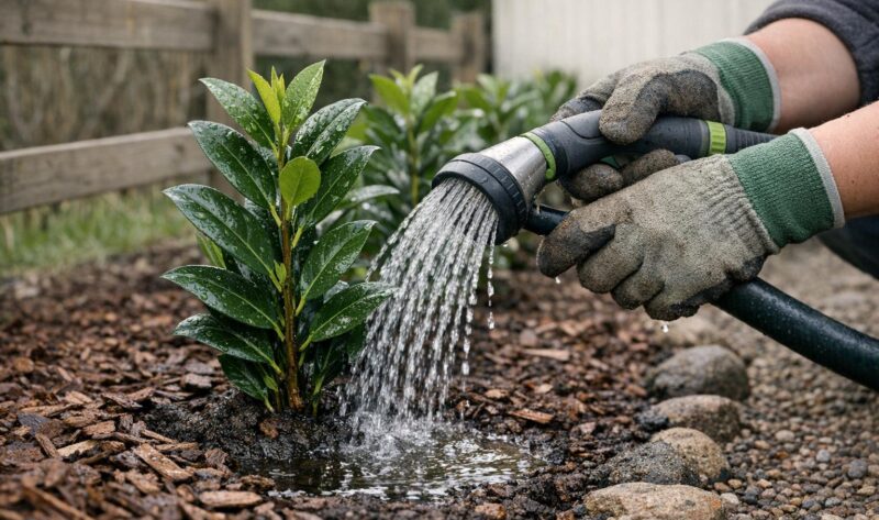 Praktisk guide til vanning av nyplantet laurbærhegg — når, hvor mye og hvordan tilpasse etter jord og vær for en sunn hekk.